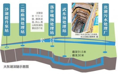 新建的北湖污水處理廠一期規(guī)模就達到80萬噸每天,將中心城區(qū)四座污水處理廠集并到城郊。在中心城區(qū)建設(shè)全國首條深層污水傳輸隧道——大東湖深隧,目前已投入使用,極大提升了武昌、青山片區(qū)的污水收集處理能力。