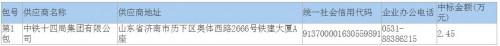 本項(xiàng)目中標(biāo)供應(yīng)商為:中鐵十四局集團(tuán)有限公司、中鐵建發(fā)展集團(tuán)有限公司、中節(jié)能?chē)?guó)禎環(huán)保科技股份有限公司聯(lián)合體;中標(biāo)金額的單位為元/立方米,本項(xiàng)目中標(biāo)金額為污水處理服務(wù)費(fèi)綜合單價(jià)2.45元/立方米。