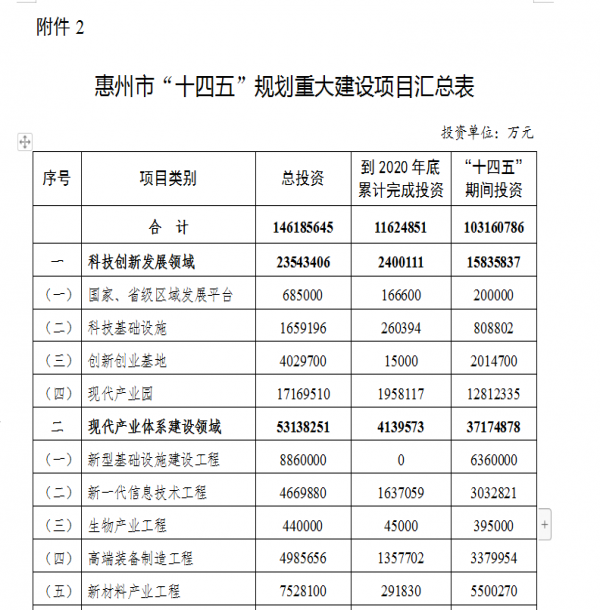 惠州十四五期間擬建重大項(xiàng)目312宗,總投資10316億元